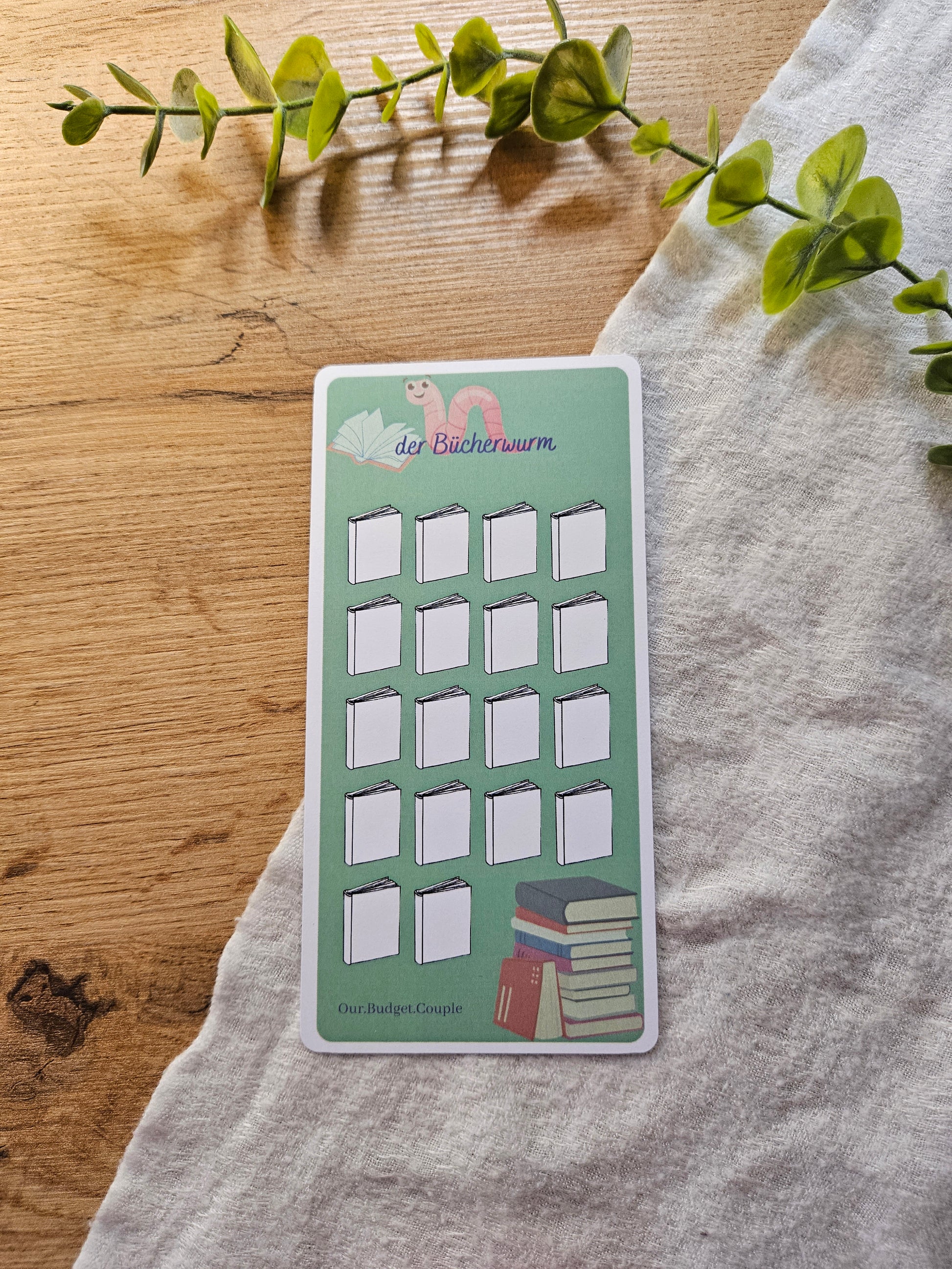 Bücherwurm Sparchallenge Printversion 200g Papier - für A6 Umschläge - Cashstuffing - Budgetieren - Umschlagmethode