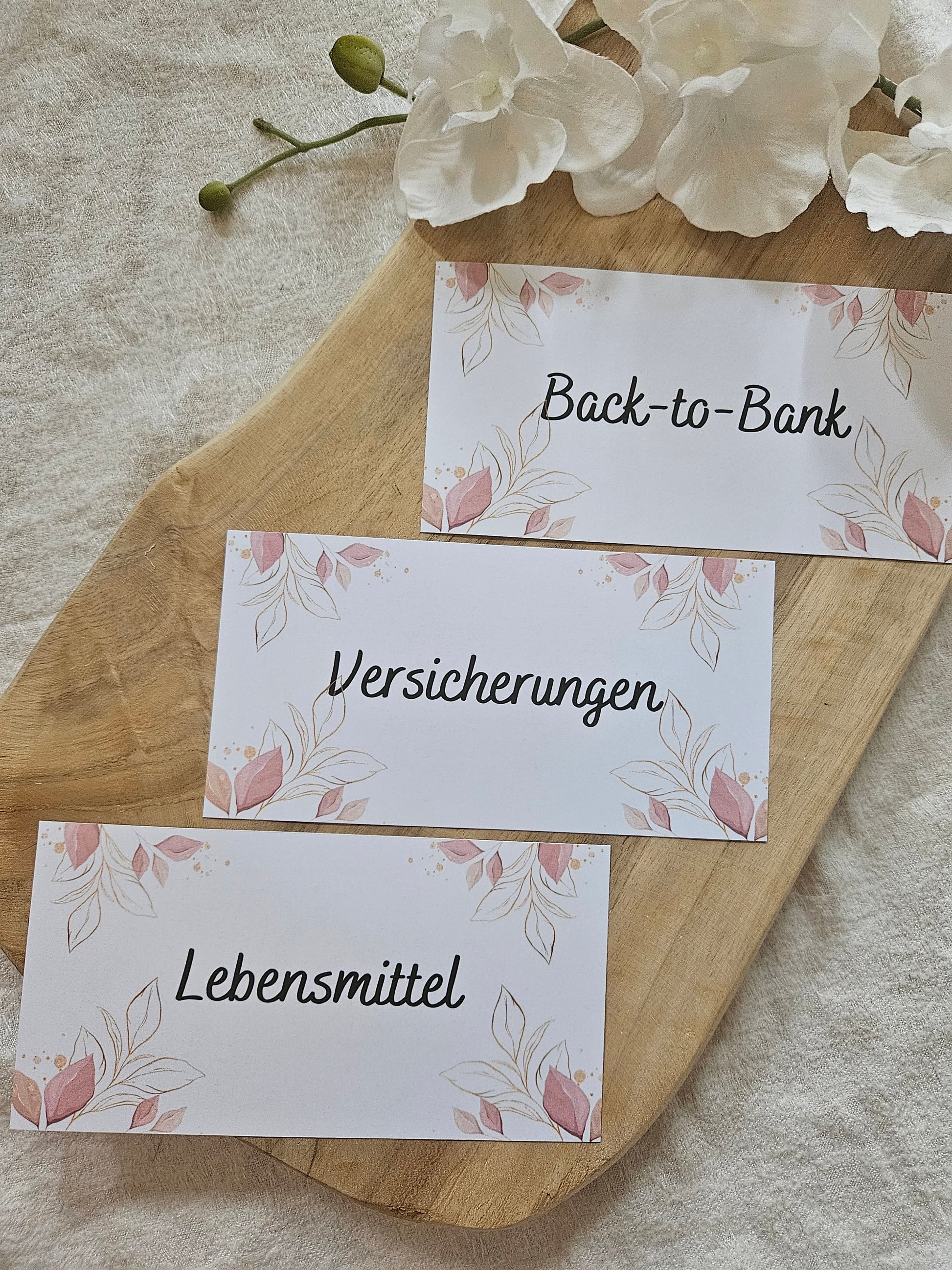 Dashboards - Einlegekarten - Pastell Blumen Rosè Optik - personalisierbar - Umschlagmethode - Budgetieren - Cashstuffing