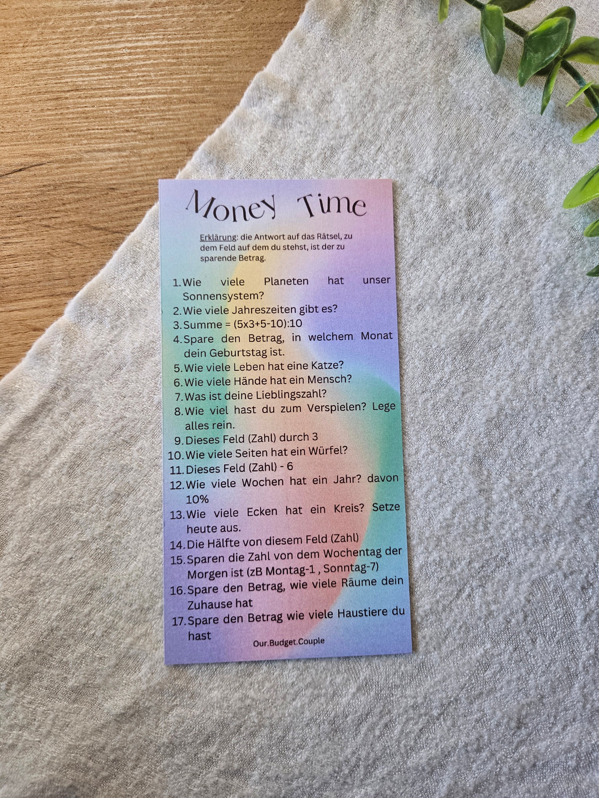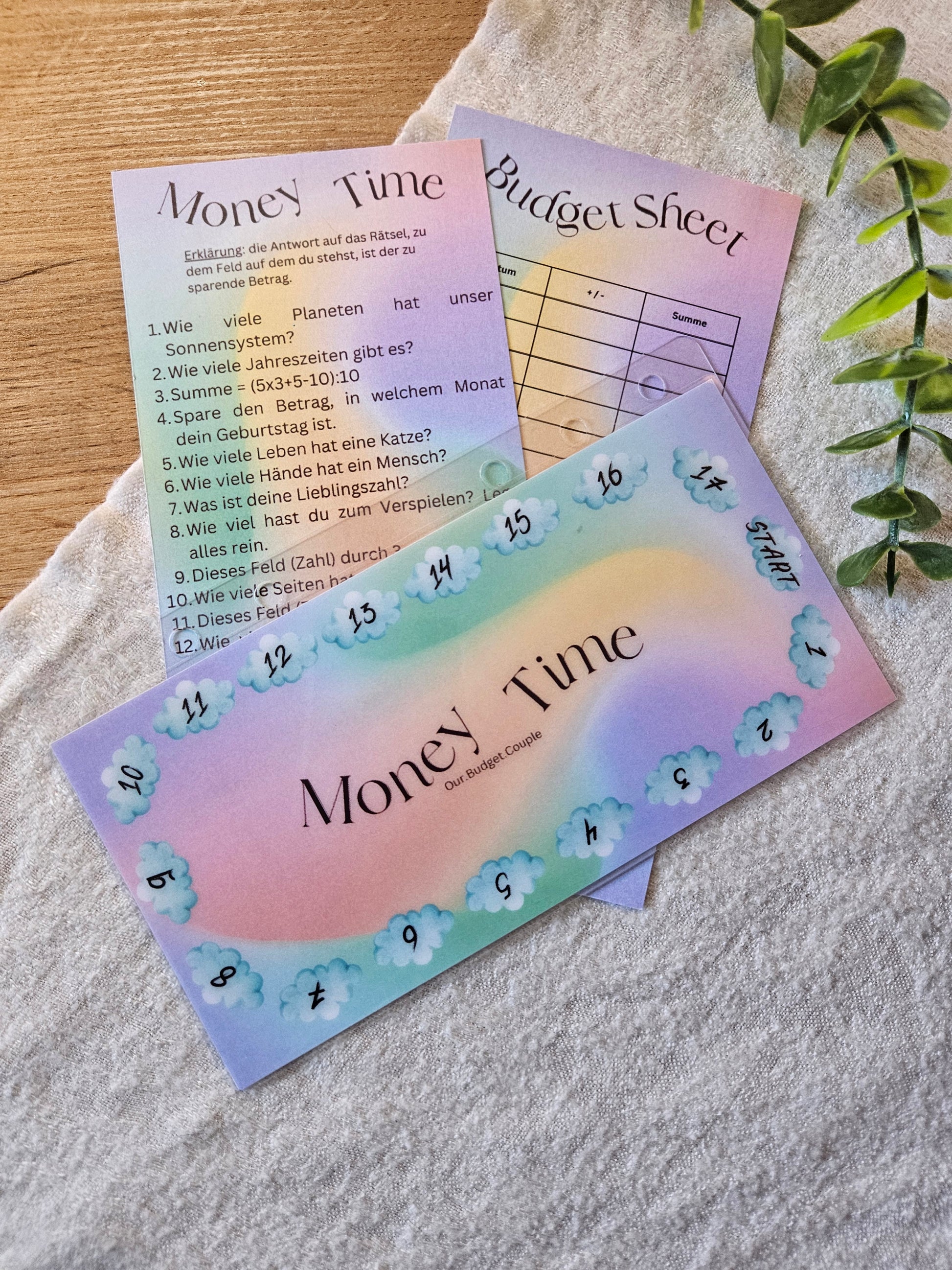 Money Time Rätselchallenge Printversion 200 g Papier laminiert 250 micron - Spiel für A6 Budgetbinder - Budgetieren - Cashstuffing