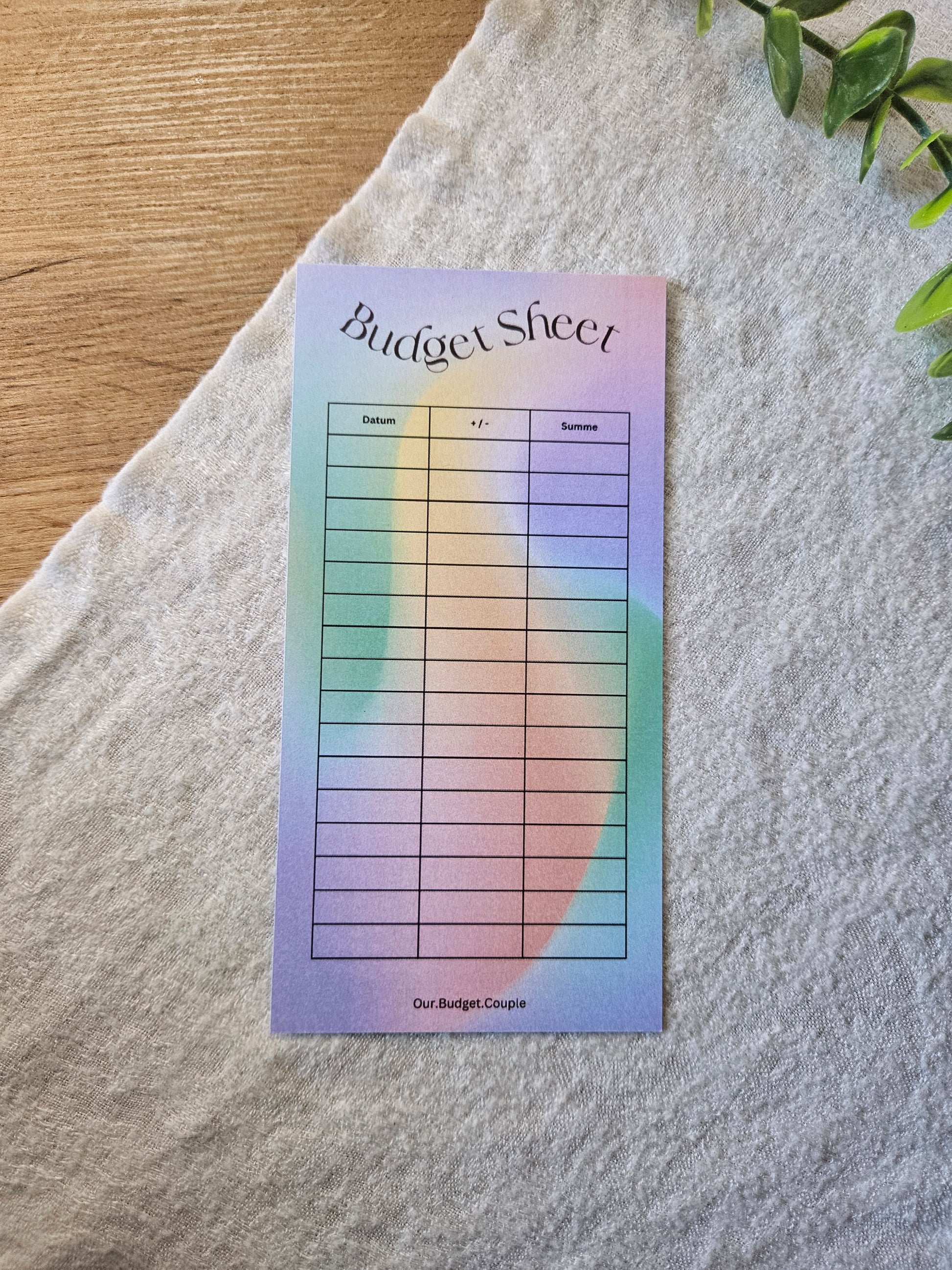 - Budget Sheet, auf 200g Papier gedruckt, passend für eure A6 Umschläge
